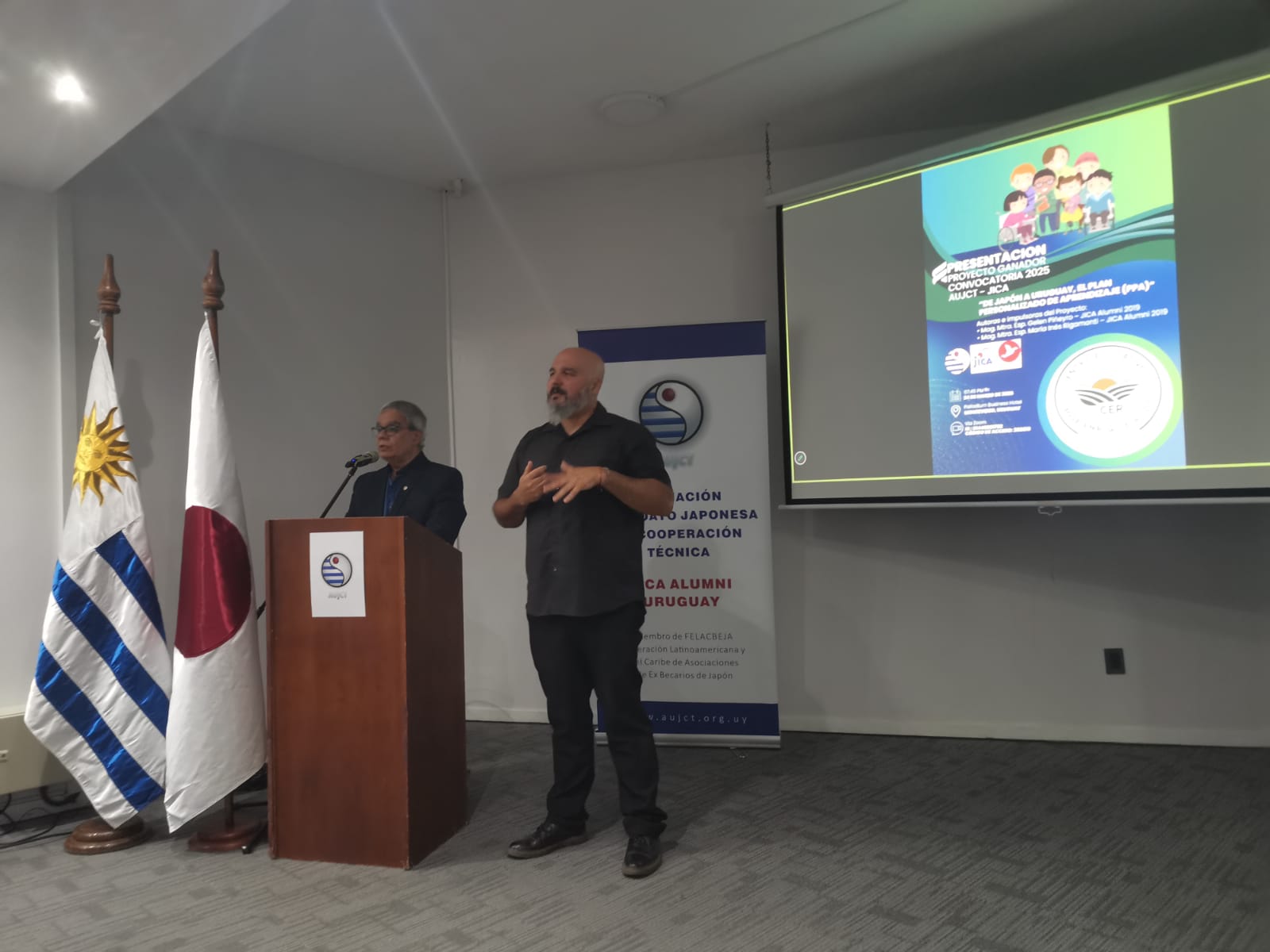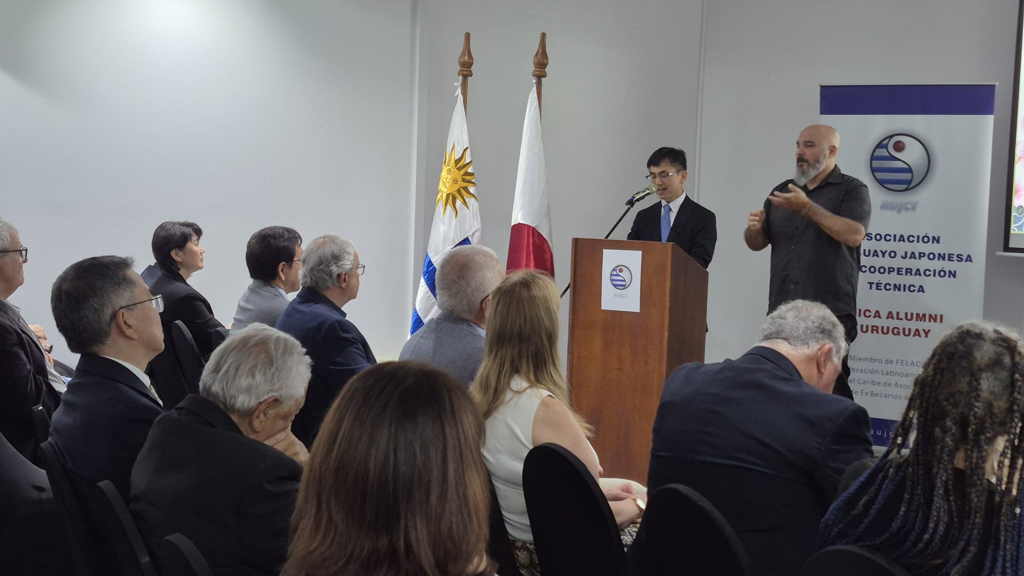 Con la presencia del Sr. Encargado de Negocios Ad Interim, de la Embajada del Japón en el Uruguay, Consejero Tetsuya Iwasaki, del Sr. Representante Residente de JICA en Uruguay, Lic. Hitoshi Matsumoto, de la Sra. Presidenta de FELACBEJA, Ing. Quim. Trini Jimenez y demás Miembros Asociados( via zoom), de la Sub Directora de la Dirección General de Educación Inicial y Primaria de ANEP, Maestra Selva Perez, de las Autoridades de Instituciones afines al Japón, de la Comisión Directiva, Fiscal y Socios de la A.U.J.C.T.( presencial y vía zoom), Invitados Especiales y de las Expositoras, autoras e impulsoras del Proyecto: Mag. Mtra. Esp. Gelen Piñeyro, JICA Alumni 2019 y Mag. Mtra. Esp. Maria Inès Rigamonti, JICA Alumni 2019, ambas Docentes en Educación Inclusiva en la faz pública y privada. las que realizaron la Beca de JICA, sobre:" Fortalecimiento de las Prácticas de Educación Inclusiva", en el Centro de JICA- Shikoku y Universidad de Kochi, Facultad de Educación, y que en esta ocasión, presentaron el mencionado Proyecto,dentro del marco de la Convocatoria 2025 de AUJCT - JICA, sobre Material Comunitario para Capacitación y Difusiòn de Conocimientos, las que se desarrollan en las Escuelas de Educación Especial Nros. 210 y 241, como así también en el Centro Educativo Jose Enrique Rodò ( C.E.R.).El Material de referencia, ya se encuentra en esta página.