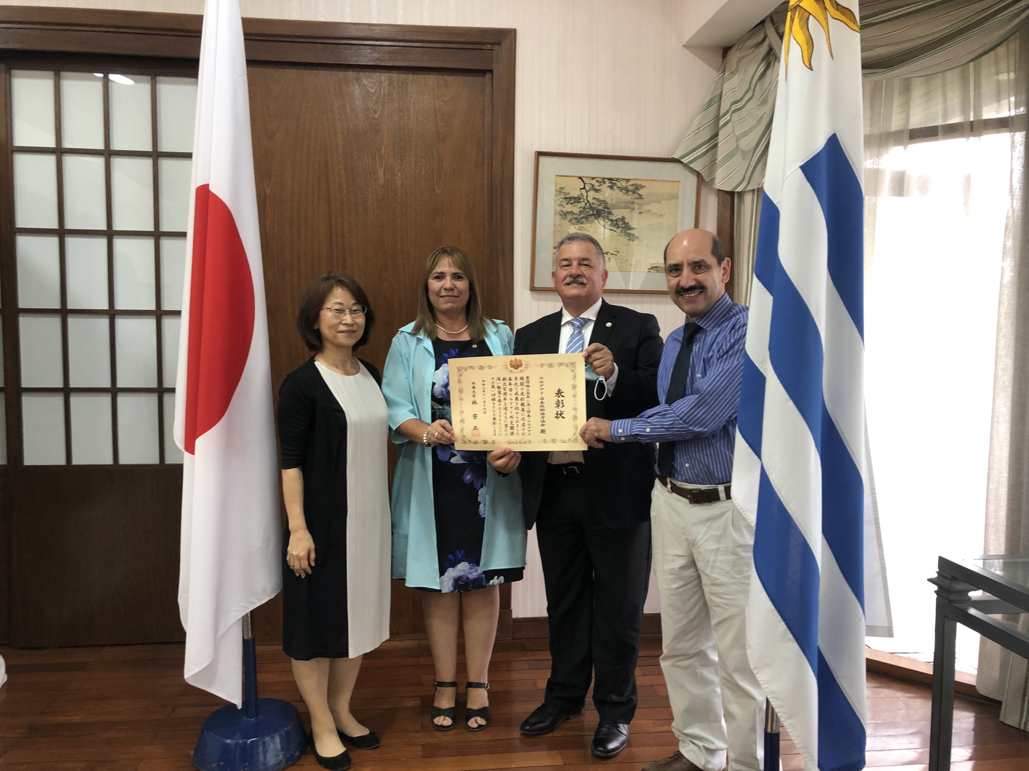 "Habiéndose conmemorado el Centenario de las Relaciones Diplomáticas entre Japón y Uruguay, es para la AUJCT una gran alegría y un alto honor el recibir esta Distinción de parte del Sr. Canciller del Japón en un año muy especial para nuestra Institución, al cumplirse los 40 años de su fundación.